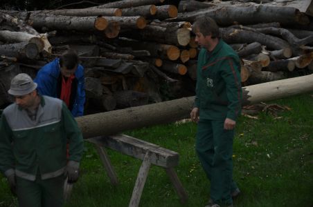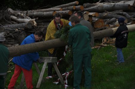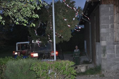 Bereits am Mittwochabend wurde der Maibaum im Haspelwald um geschnitten und nach Unterwolfsbach gebracht.