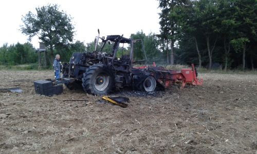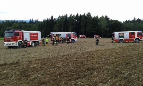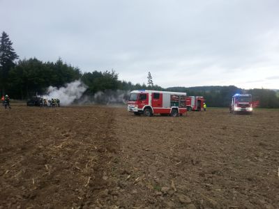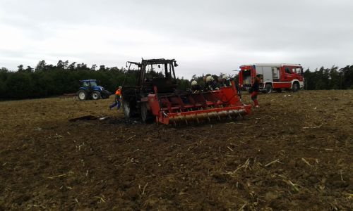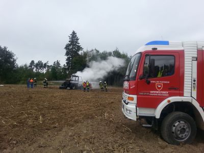 Brandobjekt war ein landwirtschaftlicher Schlepper, der bei Grubberarbeiten Feuer fing. Die sofortigen Löschversuche des Besitzers waren erfolglos, weshalb der Schlepper bei Eintreffen der Feuerwehren bereits in Vollbrand stand. Ein völliges Ausbrennen war nicht mehr zu verhindern, nach einer guten Stunde intensiver Löscharbeiten konnte „Brand aus“ gegeben werden.
