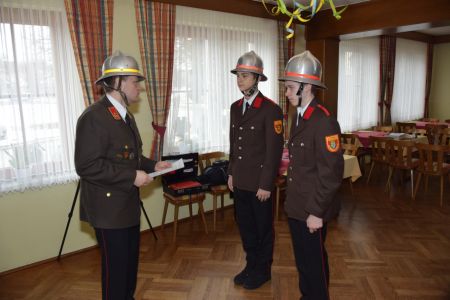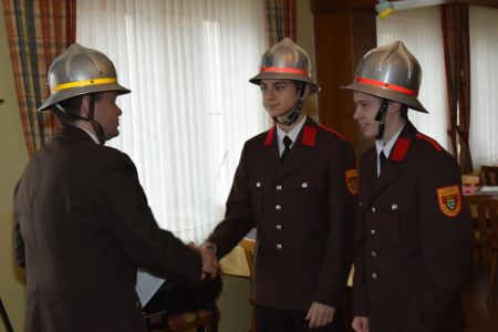 Nach der Jugend waren die Aktiven an der Reihe, die heuer wieder Verstärkung bekamen: Peter Böswarth und Philipp Pfeiffer wurden als Probefeuerwehrmänner von der Feuerwehrjugend überstellt. PFM Jasmin Pfeiffer und PFM Hannes Hössinger bestanden im April 2015 die Abschlussprüfung zum Truppmann und wurden zum Feuerwehrmann befördert.