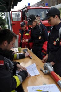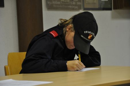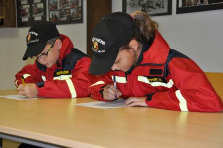 Um das Fertigkeitsabzeichen zu erwerben, müssen die Teilnehmer einen theoretischen Test bestehen und Fragen zum Thema Unfallverhütung-, Sicherheit und Erste Hilfe in der Feuerwehrjugend beantworten. Alle Teilnehmer bestanden – und die weiße Fahne wurde gehisst.