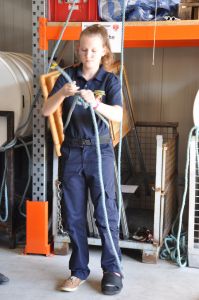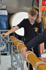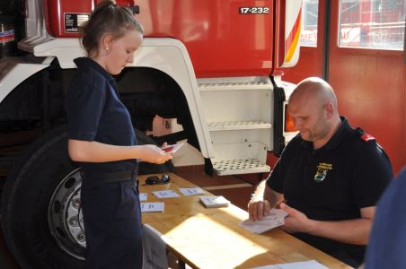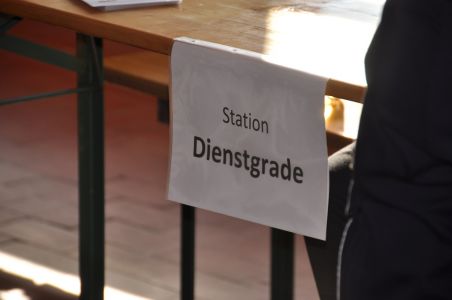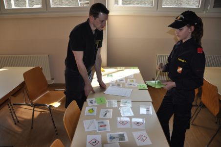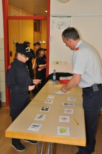 Die 12 bis 15-jährigen besuchen nach dem Theorietest mehrere Stationen, um ihr Wissen zu überprüfen. Neben dem Erkennen der bei der Feuerwehr verwendeten Dienstgrade müssen Knoten richtig gemacht werden. Die Kenntnis über Gerätschaften für den Brand- bzw. technischen Feuerwehreinsatz wird ebenso abgeprüft. Hier müssen Kärtchen gezogen und zur Bezeichnung das richtige Gerät gefunden werden. Grundlagenwissen, das im späteren aktiven Feuerwehrleben jederzeit benötigt wird. Besonders spannend für die Feuerwehrjugendmitglieder ist bei der Stufe Gold die Station Kleinlöschgeräte. Hier bekämpft der Prüfling einen simulierten Kleinbrand mit einem Feuerlöscher.