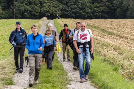 Nach dem „relativ“ erfolglosen Wandertag am 3. September – relativ unter Anführungszeichen, weil regenbedingt trotzdem noch eine gemütliche Grillerei daraus wurde – starteten wir am letzten Sonntag, dem 24. September, den zweiten Versuch. 20 Wandersmänner und -frauen sowie drei Hunde nahmen die 14km lange Strecke in Angriff.Über Oberwolfsbach nach Senning wanderten wir über den 351 Meter hohen Hausberg und erreichen die Grotte Maria im Walde. Wir folgen dem Kamm des Kronberges, wo wir pünktlich um 12.00 Uhr die Labestelle bei Hinterberg erreichten. Frisch gestärkt ging es bergab nach Hinterberg, dem Wendepunkt unserer Wanderung. Über Totzenbach und den Doppeler Panoramaweg wanderten wir zurück nach Unterwolfsbach, wo wir gegen 15.00 Uhr wieder ankamen.