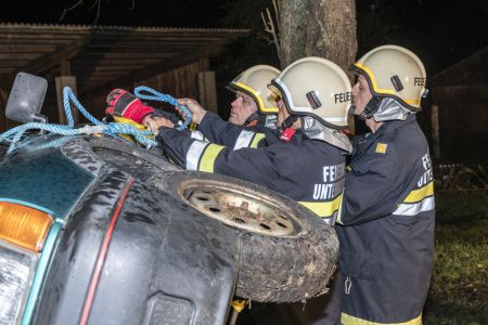 Am Abend des 7. November war das Übungsthema die technische Menschenrettung. Das Szenario war ein Verkehrsunfall, bei dem ein Auto auf der Seite lag, mit einer Person im Fahrzeug. Das Hauptaugenmerk lag auf zwei Themen: dem Absichern des Unfallfahrzeuges und ein schnelles – aber schonendes – auf-die-Räder-stellen.