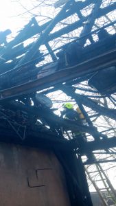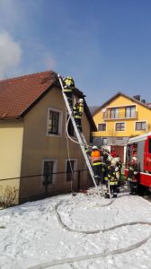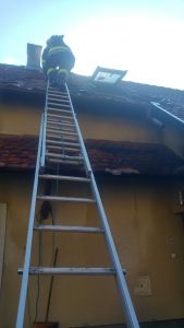 Unser Tanklöschfahrzeug war als eines der ersten Fahrzeuge am Einsatzort. Der Befehl an den Gruppenkommandanten war eindeutig: Menschenrettung! Der Eigentümer des Hauses stand auf der Terrasse, die Flucht durch das Haus war wegen des starken Rauchs nicht mehr möglich. Während ein Teil unserer Mannschaft die Leiter in Stellung brachte und den Mann rettete, rüsteten sich drei andere Kameraden für einen Atemschutzeinsatz aus. Zusammen mit anderen Feuerwehren versuchten sie, das Feuer über den Dachfirst einzudämmen.