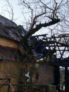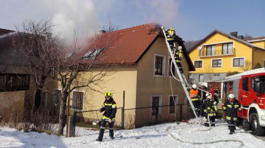 Bei einem Einfamilienhaus brach in einem Zubau aus bisher ungeklärten Gründen ein Brand aus. Die Feuerwehrmänner konnten dieses Feuer rasch unter Kontrolle bekommen, ein Smart, der dort abgestellt war, verbrannte aber nahezu rückstandsfrei. Das eigentliche Problem war, dass sich das Feuer bereits unter dem Dach ausgebreitet hatte. Die Brandherde und Glutnester zu finden war für die Feuerwehrmänner körperlich fordernd: Sie stiegen unter Atemschutz auf das Dach, zertrümmerten mit einer Feuerwehraxt die Dachplatten und machten so Platz für den nächsten. Der schnitt mit einer Rettungssäge – einer speziellen „allesschneidenden“ Motorsäge – ein Loch ins Dach. Damit war es möglich, das Feuer gezielt zu löschen.