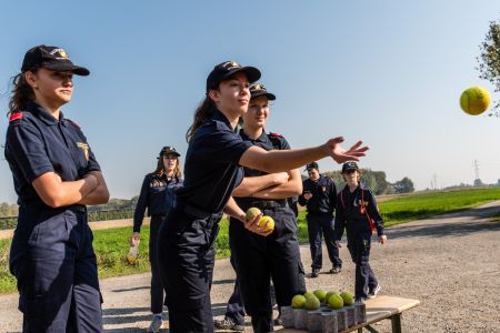 - Station 1: Tennisbälle in senkrecht montierte Kübel werfen. Blieben sie drinnen, gab es Punkte