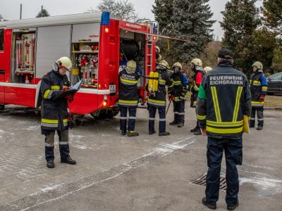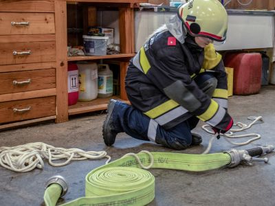 Im Gegensatz zur Wettkampfgruppe steht bei der Ausbildungsprüfung Löscheinsatz nicht die Bestzeit im Vordergrund. Ziel sind hier das richtige und geordnete Zusammenarbeiten im Löscheinsatz. Wir traten mit unserem Tanklöschfahrzeug in der Stärke 1:8 an: Gruppenkommandant, Maschinist, Melder, 2x Angriffstrupp, 2x Wassertrupp, 2x Schlauchtrupp.