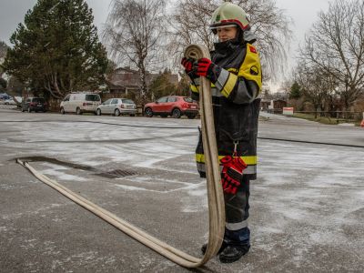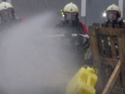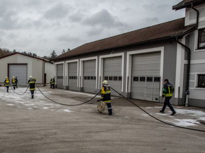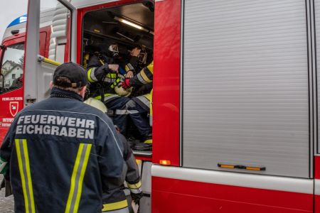 Danach wurde es ernst: Die Feuerwehr Unterwolfsbach wurde zu einem Brandeinsatz gerufen. Für die Absicherung, Erkundung über die Befehlsgebung bis hin zur Brandbekämpfung ist in dieser Konstellation eine Zeitspanne von acht bis zehn Minuten festgelegt. Nach 9:26 Minuten stoppte bei uns die Zeit – der Brand war gelöscht.