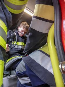 Am Anfang stand die Gerätekunde. Hierbei muss jeder Teilnehmer eine Karte ziehen und das darauf aufgeführte Gerät im Fahrzeug finden und dessen Funktion erklären. Danach trennten sich die Teilnehmer: Der Gruppenkommandant musste drei Fragen zur Gefahrenlehre beantworten. Der Atemschutztrupp hatte drei Aufgaben aus dem Bereich erste Hilfe zu lösen, Schlauchtrupp und Wassertruppmann stellten ihr Wissen aus der Knotenkunde unter Beweis. Die Aufgaben für den Melder – Ausrückemeldung, Nachforderung eines Atemschutztrupps, Einsatzsofortmeldung und Einrückemeldung – stellten sich im praktischen Teil der Prüfung.