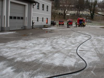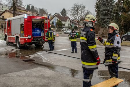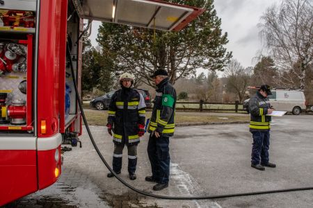 Nun, das ist einfach erklärt: In den neuen Bestimmungen ist es seit Dezember 2018 Pflicht, die Wasserversorgung in der Variante TLF an einem echten Hydranten durchzuführen – vorher war eine Hydrantenattrappe zulässig. Da wir in Unterwolfsbach mangels Ortswassernetz keinen Hydranten haben – und wohl auch nie bekommen werden – mussten wir in die Nachbarschaft ausweichen. Die FF Maria Anzbach hat uns deshalb eingeladen, für die Übungen und die Prüfung ihre Infrastruktur zu nutzen – denn die Zusammenarbeit funktioniert bei uns auch über den Unterabschnitt hinaus!