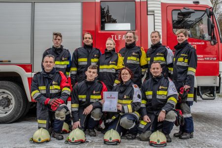 Am Samstag, dem 26. Jänner 2019, ernteten neun unserer Kameraden den Lohn für ihr Engagement: Nach einem Löscheinsatz bei Kälte, Wind und Schneegestöber erhielten sie in Maria Anzbach das Abzeichen für die Ausbildungsprüfung Löscheinsatz in Bronze. Damit endeten für die APLE-Gruppe mit 42 Jahren Altersunterschied (das Alter der Teilnehmer lag zwischen 18 und 60 Jahren) auch sechs Wochen des Lernens, abendlicher Ausbildung in Knotenkunde und erster Hilfe und praktischen Übungen an Sonntag Vormittagen. Verwalter Andrea Triebenbacher nahm sich der Organisation an und kümmerte sich gemeinsam mit EHBI Josef Hössinger um die Ausbildung der Gruppe