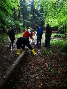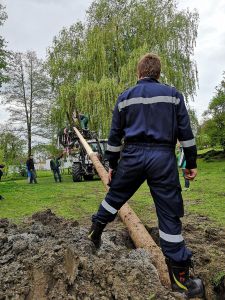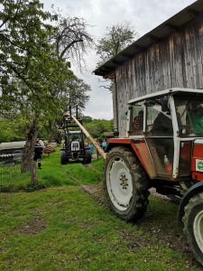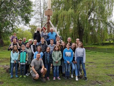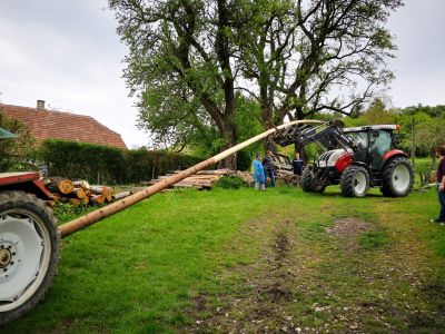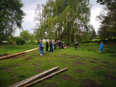 Pünktlich am 1. Mai stellten auch wir wieder einen Maibaum auf. Am Montag davor spielten wir eine Runde Extrem-Mikado. Die Spielregeln sind einfach: Der Baum muss aus dem Wald, ohne andere Bäume zum Wackeln zu bringen – sonst ist nämlich der Wipfel hin.