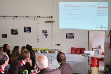 Kommandant Claus Triebenbacher eröffnete die Versammlung um 11.00 Uhr. Nach einer Gedenkminute für verstorbene Kameraden informierte eine Videopräsentation über die Aktivitäten des vergangenen Jahres.