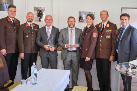 Florianiplaketten: Die Florianiplakette für die jahrzehntelange Unterstützung unserer Feuerwehr erhielten