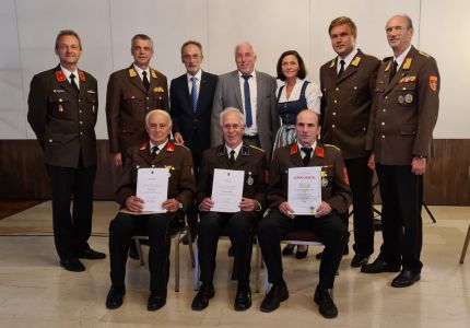 EV Franz Köberl mit dem Ehrenzeichen für 50-jährige verdienstvolle Tätigkeit im Feuerwehrwesen des NÖLFV ;