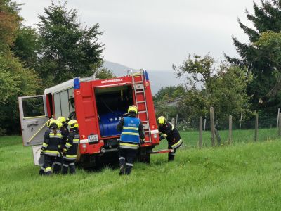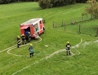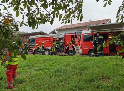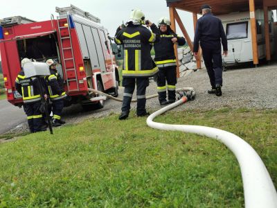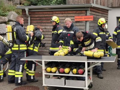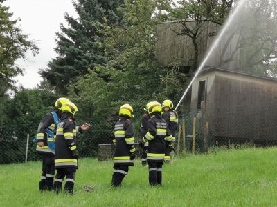 Bei der heutigen Unterabschnittsübung überlegte sich das Planungsteam der FF Totzenbach ein komplexes Szenario, um den Kommandanten und die Einsatzleitung zu fordern: In der Werkstatt der Dachdeckerei Weber in Oberwolfsbach kam es nach einer Explosion zum Brand. Zwei Mitarbeiter wurden vermisst, ein dritter lag brennend vor der Werkstatt (natürlich alle dargestellt durch Puppen). Der Brand griff auf eine benachbarte Hecke über, im Nachbarhaus wurde ein Kind vermisst. In der Werkstatt selbst standen Gasflaschen, eine davon war (simuliert) mit Wärme beaufschlagt. Das mobile Einsatzleitungsfahrzeug aus Inprugg unterstützte die Einsatzleitung vor Ort.