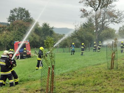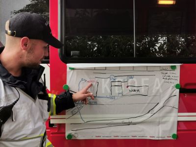 Unser Auftrag war, das Wohngebäude auf der Rückseite vor einer Ausbreitung des Brandes zu schützen. Nach etwas über einer Stunde waren alle Personen gefunden, der Brand gelöscht und die Übung erfolgreich beendet.