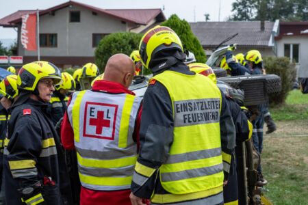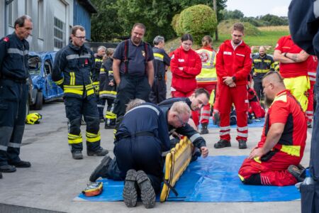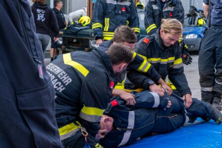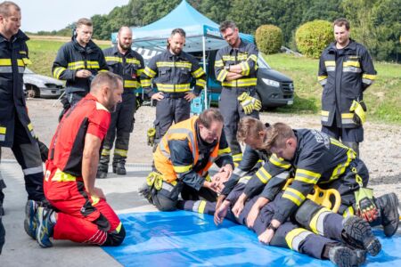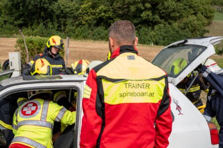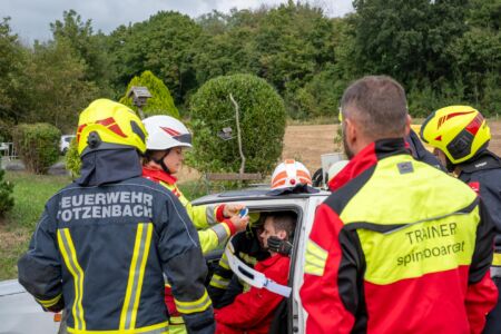 Bei der Unterabschnittsübung West ging es heuer etwas anders als gewohnt zu. Statt der üblichen einstündigen Großübung nahm die UA-Übung den ganzen Samstag in Anspruch. Das hatte seinen Grund: Gemeinsam mit dem Verein spineboard.at und dem Roten Kreuz Neulengbach sowie dem ASBÖ Altlengbach beschäftigten sich knapp 40 Feuerwehrmänner und -frauen mit dem Thema technischer Einsatz und Menschenrettung. Das Gelände der Firma Ecker in Doppel war der richtige Ort dafür. Um 08.00 Uhr startete der Tag mit Theorie: Gerald Weichselbaum, Gründer und Obmann des Vereins, Feuerwehrkommandant und Trainer aus Leidenschaft, brachte den Anwesenden die Grundlagen über Unfallphysik, Einsatztaktik und richtiges Arbeiten bei. Sein Credo: Die „Beamtenrettung“ – mit einfachen Mitteln und so wenig Aufwand wie möglich schnell zum Ziel kommen.