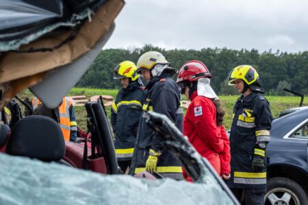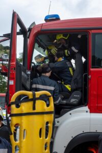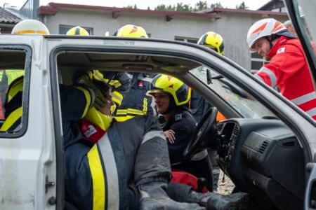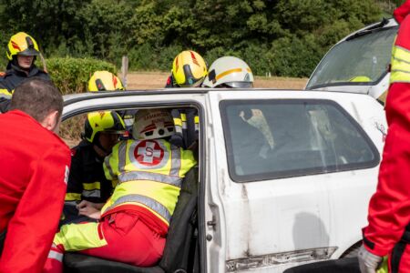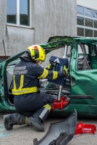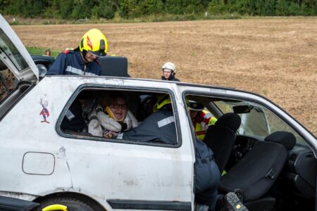 Beim Stationsbetrieb lernten die Übungsteilnehmer die Grundlagen über richtiges Arbeiten mit dem spineboard, die Rettung aus LKW und Traktor sowie sich schnell über die richtigen Schwachstellen eines Autos zum Verunfallten vorzuarbeiten.