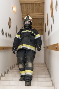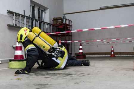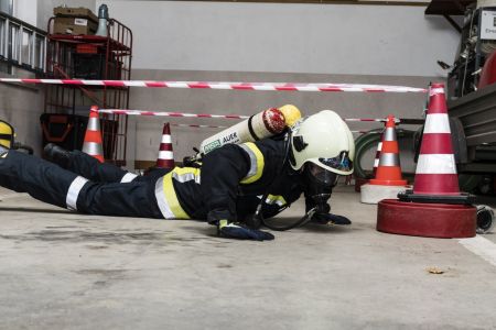 Dank der professionellen Organisation waren alle Atenschutzträger innerhalb von 4 Stunden erledigt – einige davon auch körperlich. Wieder zeigte sich, dass dieser Test nicht zu unterschätzen ist. Das anstrengendste Hindernis des Abends war am Ende schnell gefunden – die Wahl fiel auf die Hindernisstrecke. Bei dieser müssen Absperrbänder insgesamt 18 Mal abwechselnd überstiegen und unterkrochen werden. Am Ende des Abends hatte alle den Finnentest bestanden.