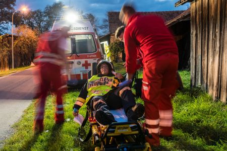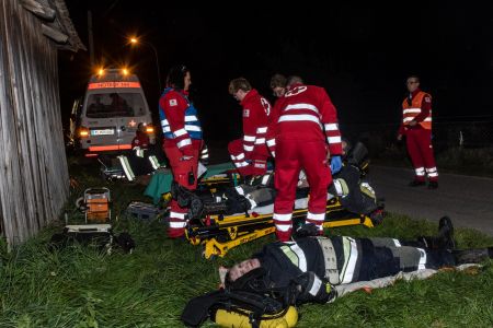 Bei der Übung des Unterabschnitts West, die heuer in Unterwolfsbach stattfand und von uns organisiert wurde, war vieles neu und vieles anders als bisher. Änderungen, die nicht auf ungeteilte Zustimmung stießen. Gemeinsam mit dem Roten Kreuz Neulengbach arbeiteten wir ein Szenario aus, das alle Übungsteilnehmer forderte. Auch für das Rote Kreuz wurde eine möglichst realistische Situation geschaffen: Bezirksstellenleiterstellvertreterin Katrin Wiesinger schminkte unsere „Opfer“ und erklärte ihnen die entsprechenden Symptome zu ihren Verletzungen. Auch ein Stahlstift im Bein war dabei – dazu musste nicht viel erklärt werden!