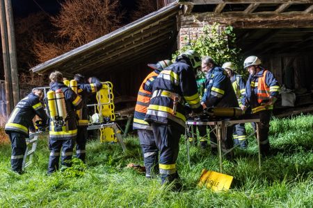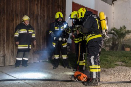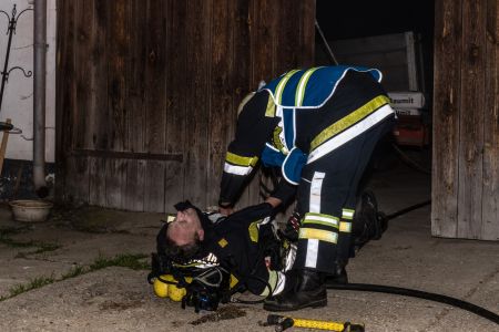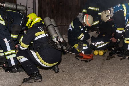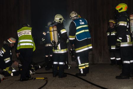 Nach etwa einer Stunde und körperlicher Höchstleistungen der eingesetzten Atemschutztrupps – immerhin retteten sie drei Kameraden in voller Atemschutzausrüstung – wurde Übungsende befohlen.