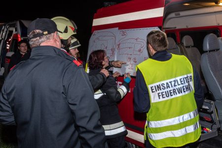 „Das war eine Übung nach meinem Geschmack.“ sagte Abschnittskommandant BR Franz Gruber beim Resümee nach der Übung vor angetretener Mannschaft, Ehrengästen und Übungsbeobachtern. Das Chaos entspräche der Situation bei einem echten Einsatz, so Gruber.