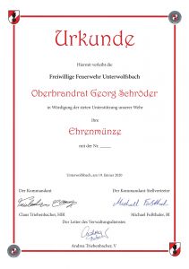 Folgenden Personen wurde in Würdigung ihrer Unterstützung der Freiwilligen Feuerwehr Unterwolfsbach die Ehrenmünze verliehen: