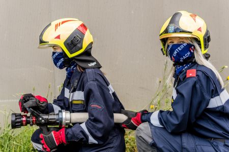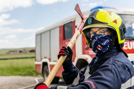 „Warum keine herkömmliche Maske? Nun, wir sind überzeugt, dass Corona irgendwann wieder geht. Unser Multifunktionstuch bleibt und begleitet uns weiterhin in der Freizeit und im harten Feuerwehralltag!“