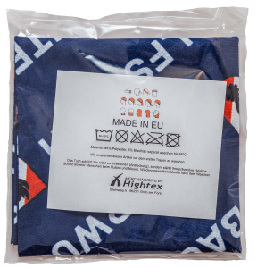 In der EU hergestellt, bis 95°C waschbar. Die Lieferung erfolgt einzeln verpackt.