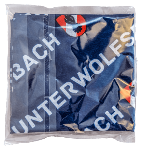 Multifunktionstuch in feuerwehrblau, mit Korpsabzeichen und Schriftzug UNTERWOLFSBACH in weiß. Der Mund-Nasen-Schutz unserer Wahl!