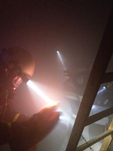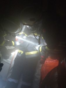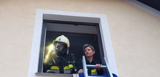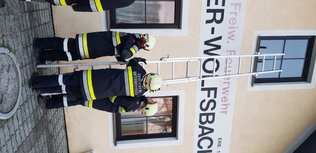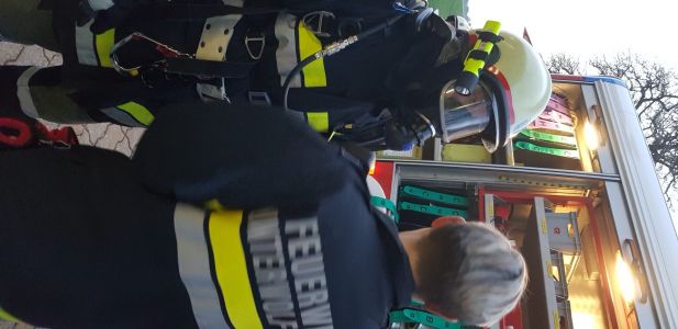Die Übung am gestrigen 2. April stand im Schwerpunkt des Atemschutzeinsatzes. Doch nicht nur. Auch das Arbeiten mit der Steckleiter – das klassische Anleitern – und der Einsatz der Wärmebildkamera waren die definierten Übungsziele.
