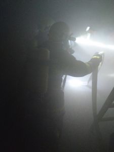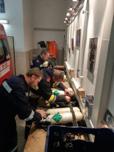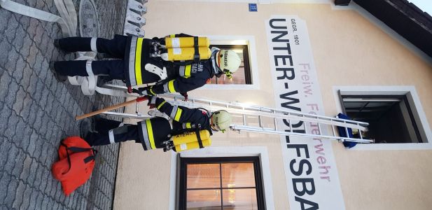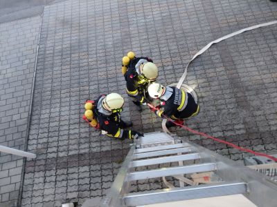 Zum simulierten Einsatz mussten wir nicht weit fahren: er fand im Feuerwehrhaus statt. Auf dem verrauchten Dachboden war eine Person versteckt. Nachdem die Löschleitung vorbereitet war, stieg der Atemschutztrupp über die Leiter durch ein Fenster im ersten Stock ein. Dort bereitete er sich für die Personensuche vor. Dank Wärmebildkamera war diese rasch gefunden und gerettet.