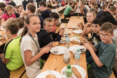 Um diese Menge an Teilnehmern unterzubringen, braucht es vor allem zwei Dinge: gute Organisation und viel Platz. Der Lagerplatz wurde in vier Unterlager (UL) unterteilt, unser Zelt – eines von fast 500 im gesamten Lagerbereich – stand im UL Ost. Nach dem Eintreffen der Gruppen am Donnerstag starteten auch schon die Bewerbe: JFM Erik Triebenbacher holte sich sein Feuerwehrjugendbewerbsabzeichen in Bronze, Nadine Pfeiffer ihr Feuerwehrjugendbewerbsabzeichen in Silber. Für den Abend war die feierliche Lagereröffnung angesetzt.