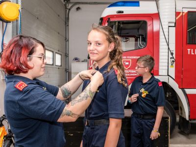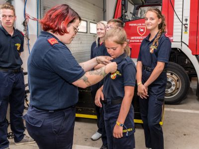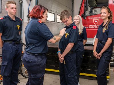 Nach der Heimkehr überreichte Kommandantin Iris Rath die Abzeichen an unsere Feuerwehrjugendmitglieder.