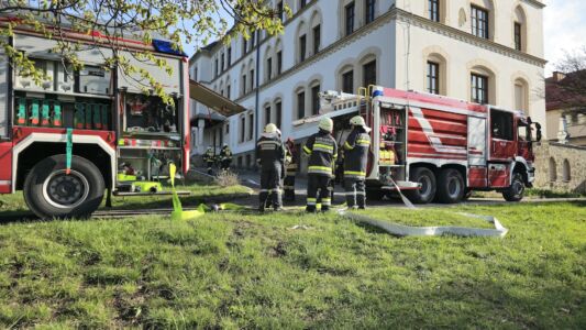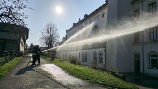 Das Brandszenario fand im alten Annunziiatakloster Stein statt. Auf drei Ebenen suchten und retteten die Atemschutztrupps vermisste Personen. Die restlichen Einheiten schützten das Gebäude von außen und retteten Personen von einer Terrasse.