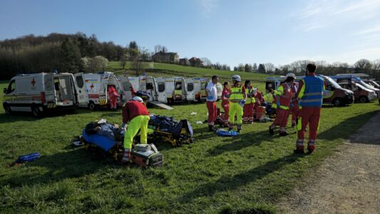 Im zweiten Szenario wurde ein schwerer Busunfall simuliert. Verletzte und Tote wurden aus dem Bus geholt und von den Rettungskräften abgehandelt.