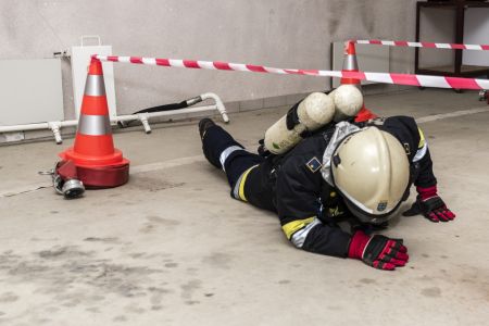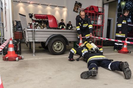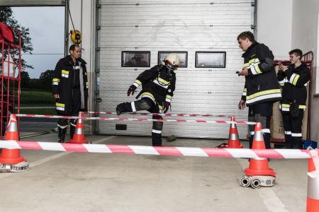 In 14,5 Minuten muss der Atemschutzträger fünf Stationen in vorgegebenen Zeiten absolvieren: