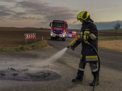 Heute um 15.47 Uhr wuden wir zu einem B2 Fahrzeugbrand alarmiert. Aus bisher ungeklärter Ursache hatte der Benzinkanister im Kofferraum eines Autos zu brennen begonnen. Der Fahrer konnte ihn noch auf die Straße werfen und verhinderte damit schlimmere Schäden am Fahrzeug. Beim Eintreffen war für uns deshalb nicht mehr viel zu tun. Nach der medizinischen Erstversorgung übergaben wir den Fahrer der Rettung. Wir löschten einige kleine Flurbrände und brennenden Asphalt. Eine knappe Stunde später rückten wir wieder ein.