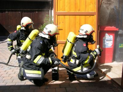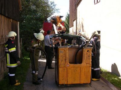 Sofort wurde mit der Menschenrettung durch einen Atemschutztrupp begonnen, jedoch zeitgleich befinden sich mehrere Jugendliche im Nachbarhaus und rauchen heimlich am Heuboden. Durch den lauten Knall des Blitzeinschlages erschrecken sie, schmeissen die brennenden Zigaretten weg und flüchten. In Panik stürzen vier Jugendliche vom vier Meter hohen Heuboden herunter und bleiben verletzt am Boden liegen.